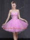 Sweetheart Sleeveless Prom Dresses Mini Length Appliques Lilac Organza