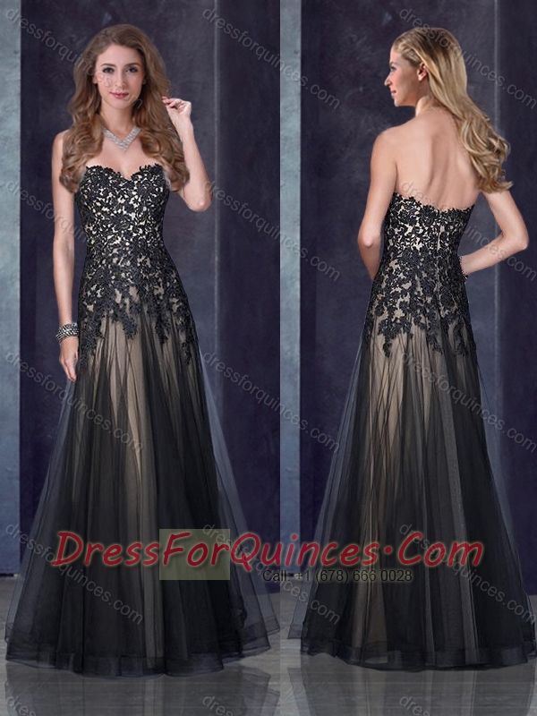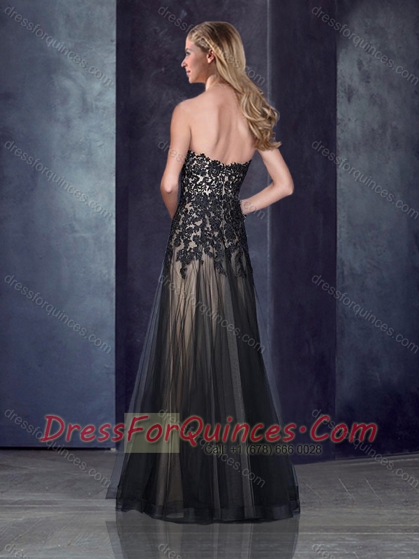 Top Selling Empire Applique Black Prom Dress in Tulle
