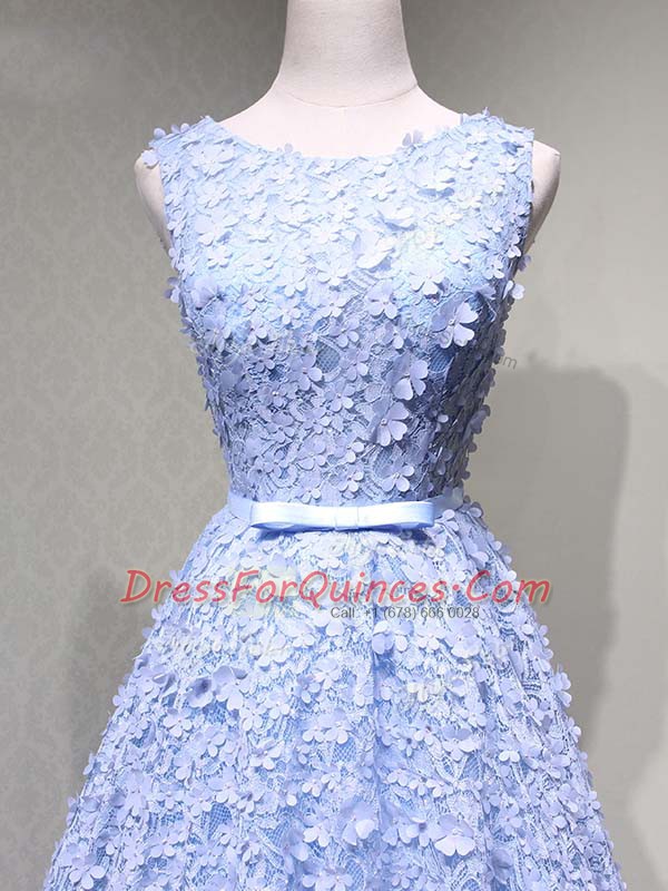 Top Selling Lavender Lace Up Prom Evening Gown Belt Sleeveless Mini Length