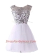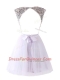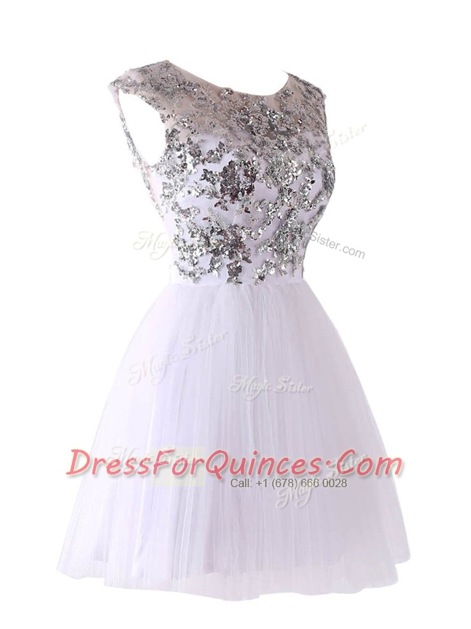 Top Selling Scoop White A-line Sequins Dress for Prom Backless Tulle Cap Sleeves Mini Length