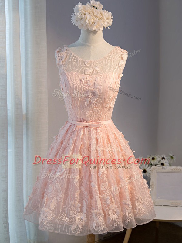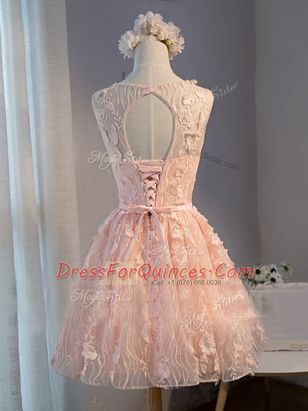 Tulle Sleeveless Mini Length Prom Dress and Appliques and Belt