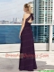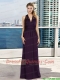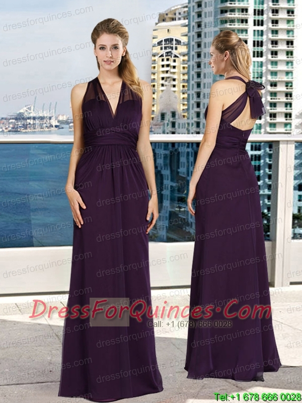 V Neck Empire Ruching Dark Purple Prom Dress with Floor Length