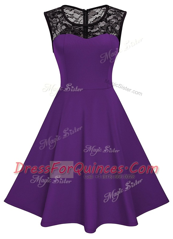 Wonderful Scoop Purple A-line Lace Dress for Prom Zipper Satin Sleeveless Knee Length