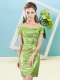 Yellow Green Off The Shoulder Zipper Sequins Short Sleeves