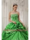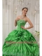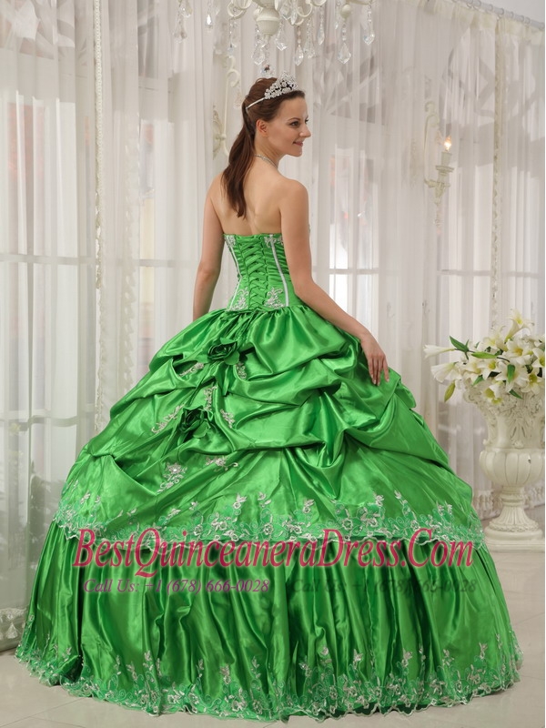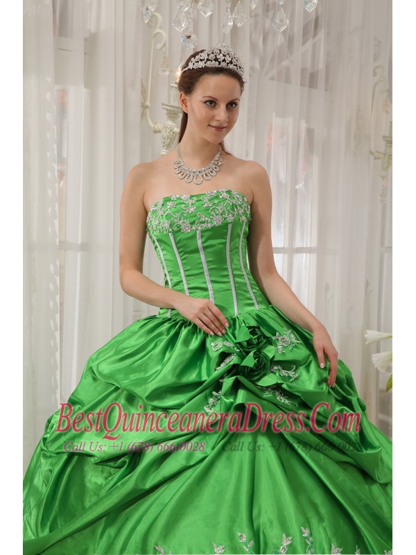 Spring Green Ball Gown Strapless Floor-length Taffeta Beading and Applique Quinceanera Dress