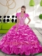 2015 Affordable Fuchsia Dress for Quince with Beading and Pick Ups