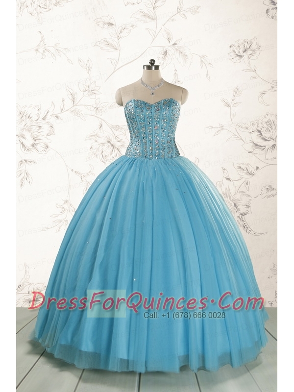 2015 Ball Gown Baby Blue Beading Quinceanera Dress with Wraps