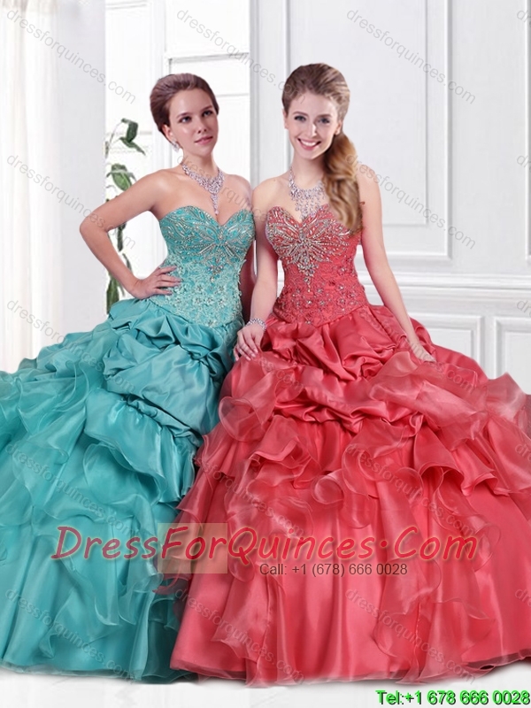 2015 Classical Appliques and Beaded Sweet 16 Dresses with Floor Length