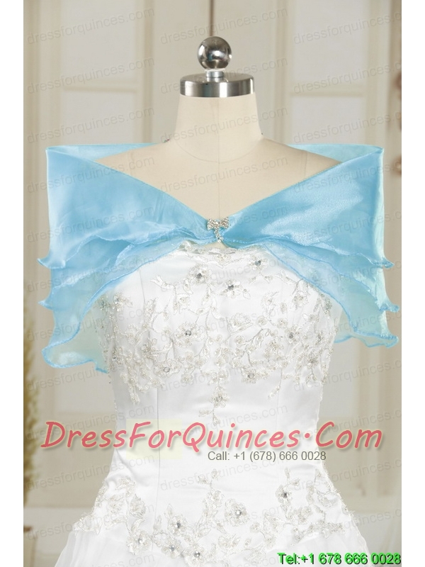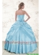 2015 Discount Aqua Blue Strapless Sweet 15 Dress with Appliques