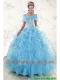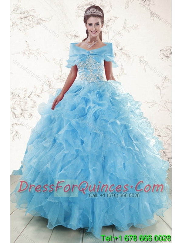 2015 Elegant Baby Blue Quince Dresses with Appliques and Ruffles