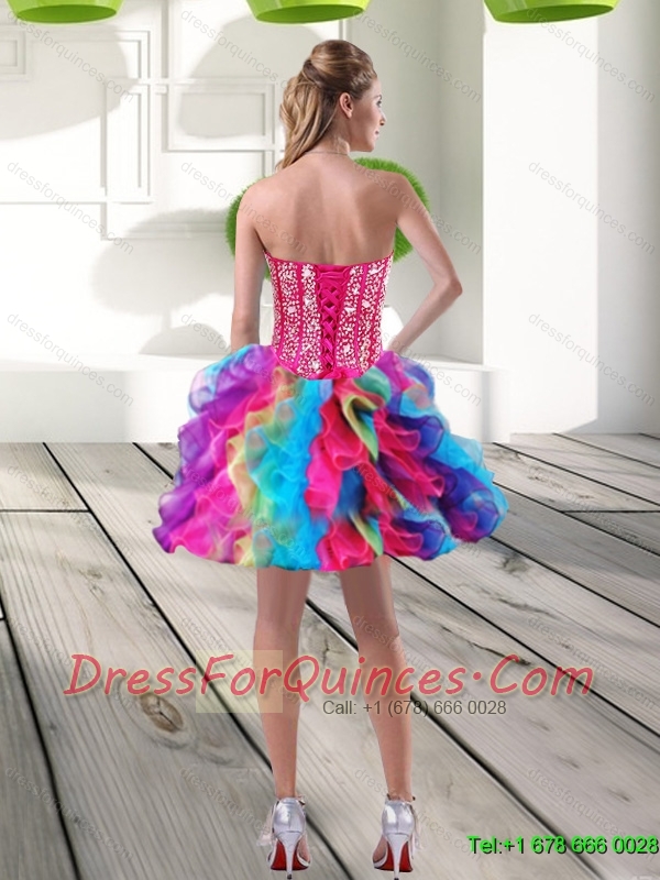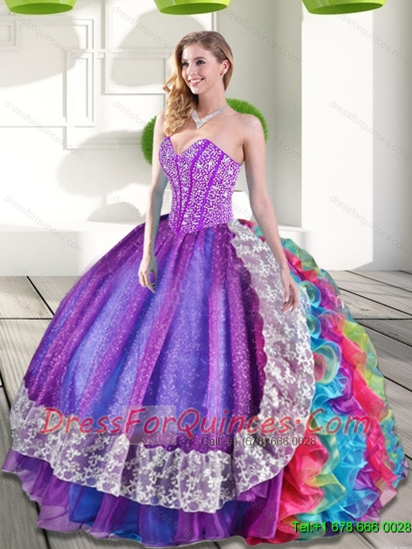 2015 Fashionable Beading and Ruffles Sweetheart Quinceanera Dresses in Multi Color