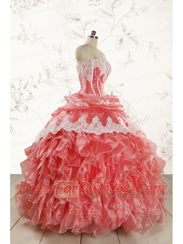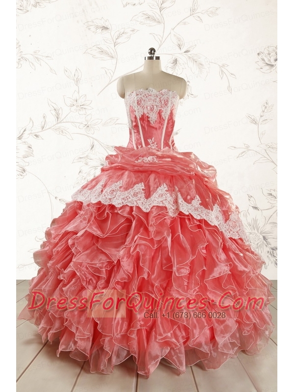 2015 Fashionable Strapless Watermelon Quinceanera Dresses
