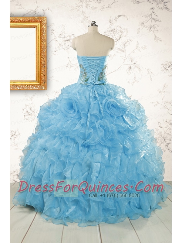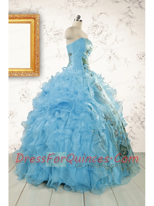 2015 New Style Ruffles Embroidery Strapless Quinceanera Dresses in Baby Blue