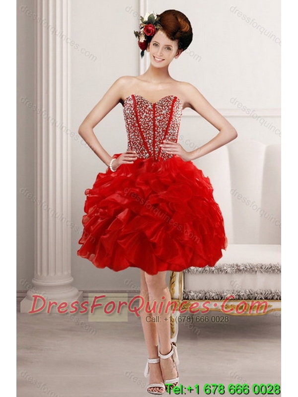 2015 Newest Beading and Ruffles Quince Dress in Red