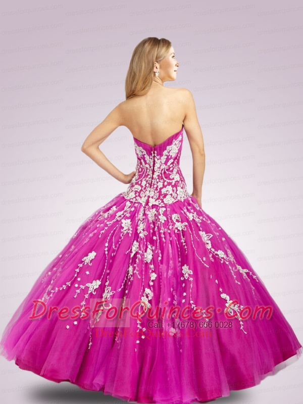 2015 Popular Sweetheart Appliques Quinceanera Dresses in Fuchsia