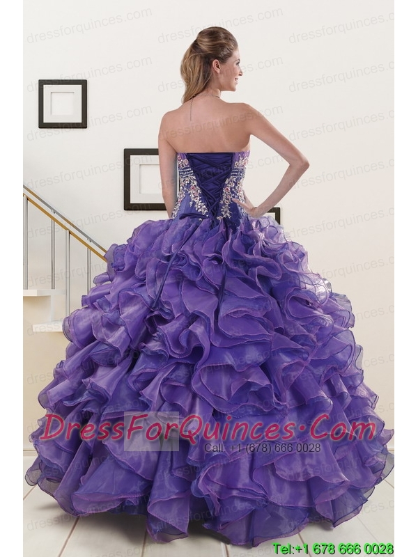 2015 Prefect Purple Sweet 15 Dresses with Embroidery and Ruffles