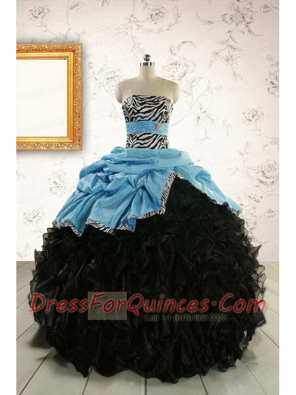 2015 Prefect Ruffles White Quinceanera Dresses with Zebra
