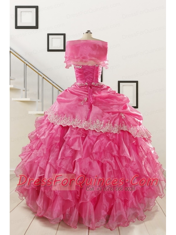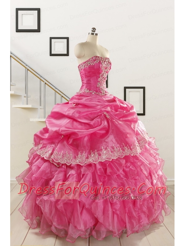 2015 Pretty Appliques and Ruffles Quinceanera Gowns in Hot Pink