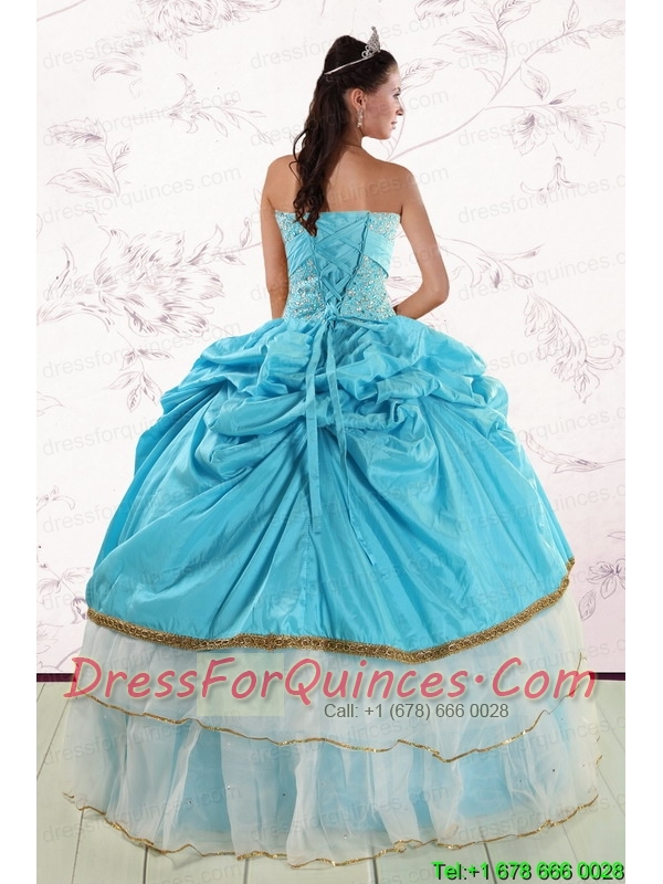 2015 Pretty Sweetheart Aqua Blue Quinceanea Dresses with Beading