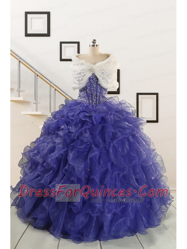 2015 Sweetheart Ruffles Purple Quinceanera Dresses with Wraps