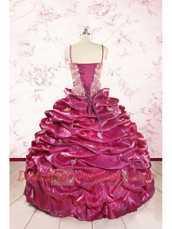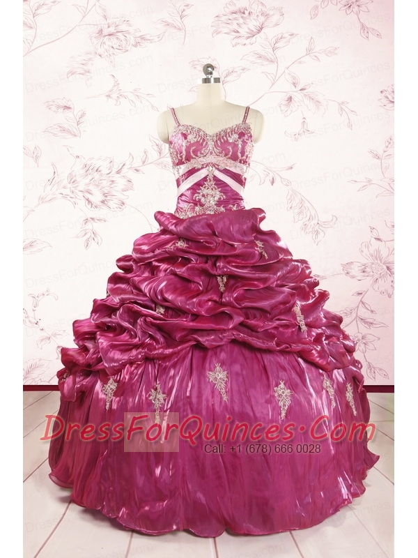 2015 Unique Appliques Quinceanera Dresses with Spaghetti Straps