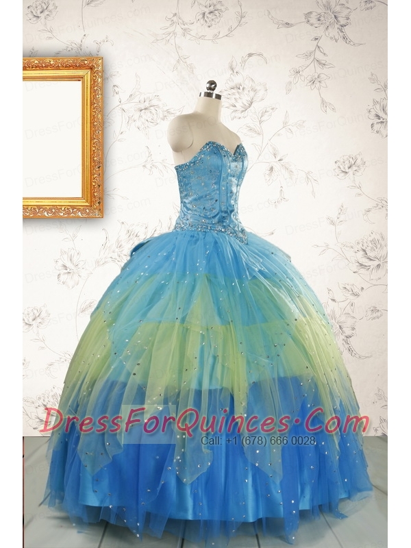 2015 Unique Sweetheart Beading Quinceanera Dresses in Multi-color