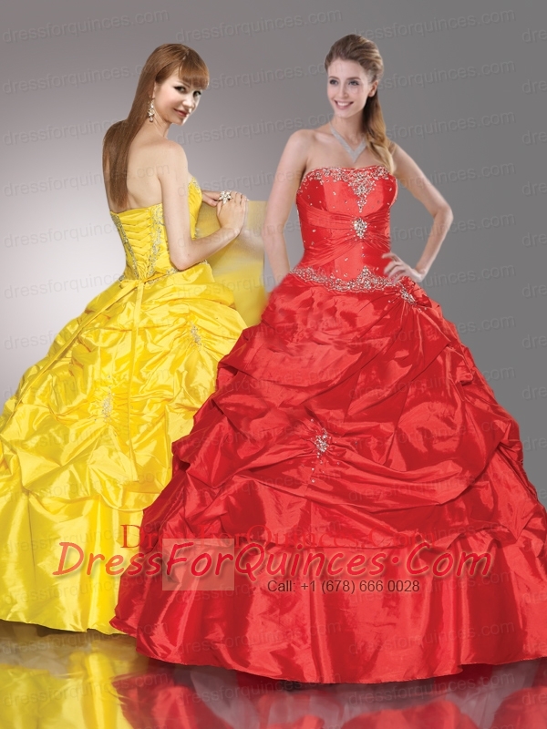 Appliques Sweetheart Taffeta 2015 Sweet 16 Dress with Pick-ups