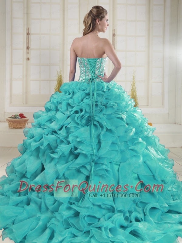Aqua Blue Sweetheart Brush Train Beading Quinceanera Dresses