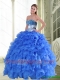 Beautiful Beading and Ruffles Sweetheart Blue Quinceanera Gown for 2015 Spring