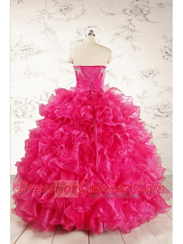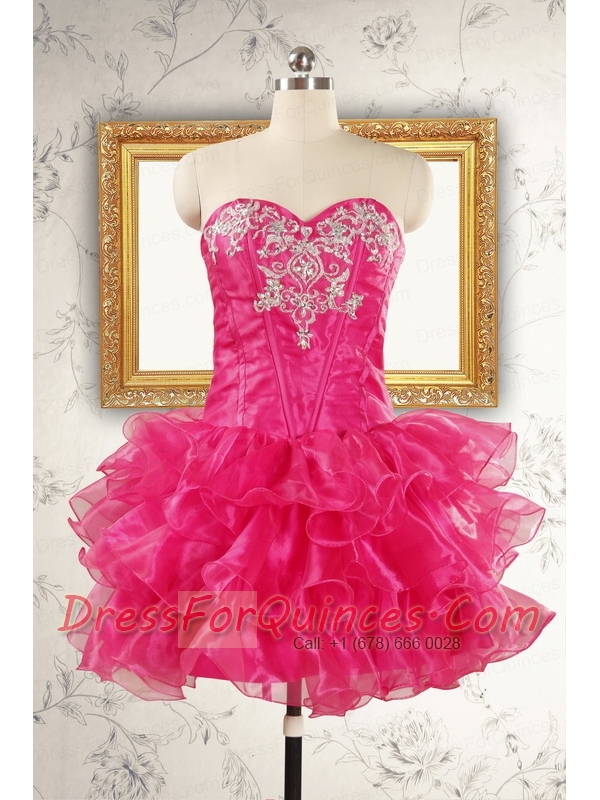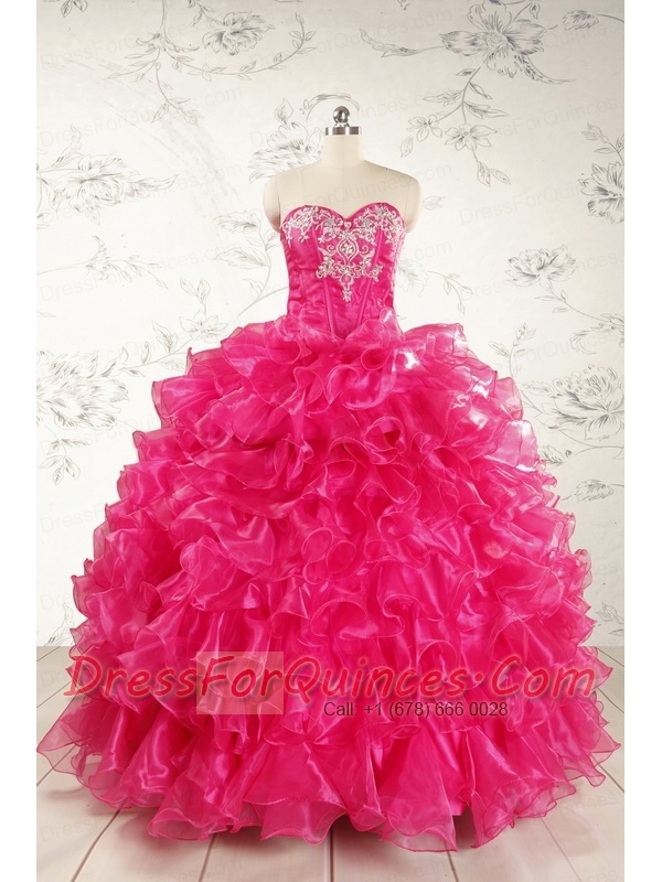 Beautiful Hot Pink Sweet 15 Dresses with Appliques and Ruffles
