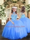 Blue Tulle Lace Up Vestidos de Quinceanera Sleeveless Floor Length Embroidery