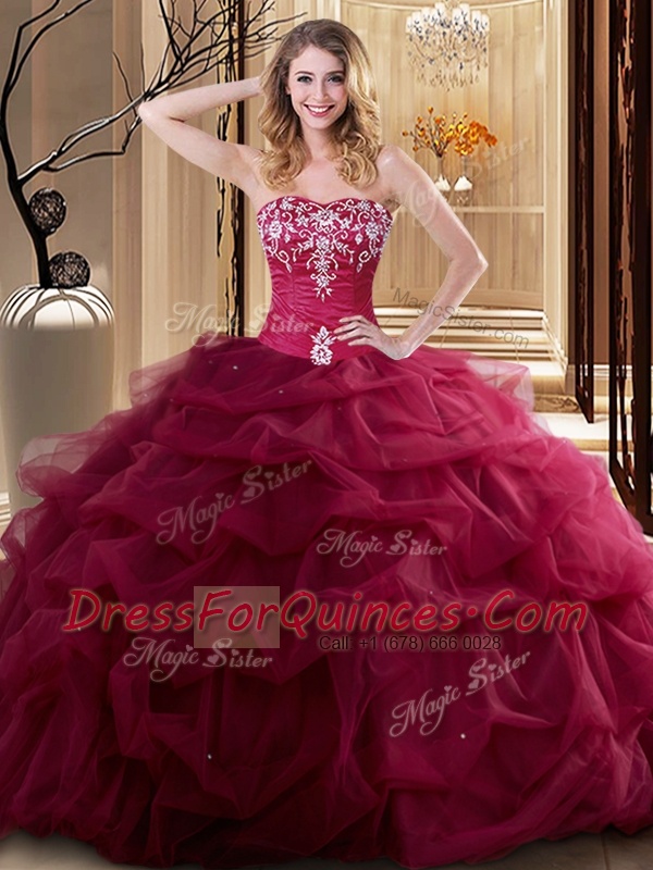 Charming Floor Length Ball Gowns Sleeveless Wine Red Quinceanera Dress Lace Up