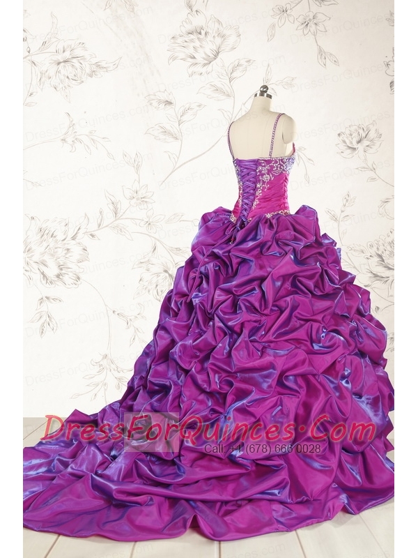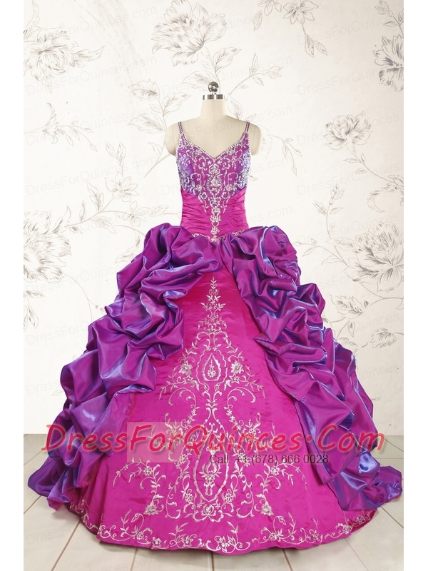 Classic Ball Gown Embroidery Court Train Quinceanera Dresses in Purple