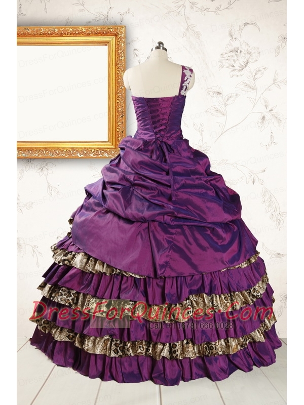 Classic One Shoulder Quinceanera Dresses with Beading and Leopard