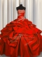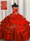 Clearance Red Ball Gowns Strapless Sleeveless Taffeta Floor Length Lace Up Appliques and Pick Ups 15th Birthday Dress