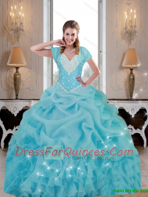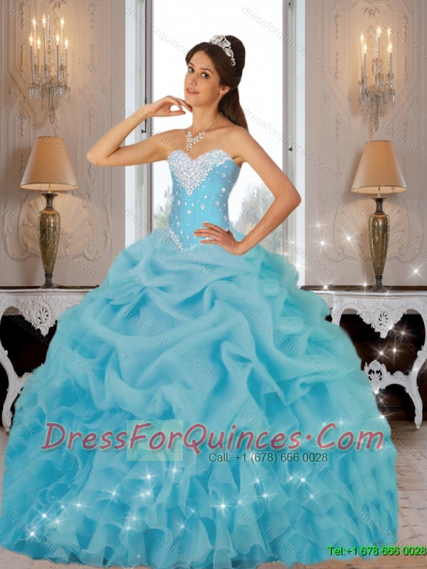 Cute Beaded 2015 Quinceanera Dresses in Baby Blue