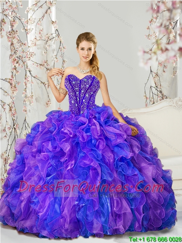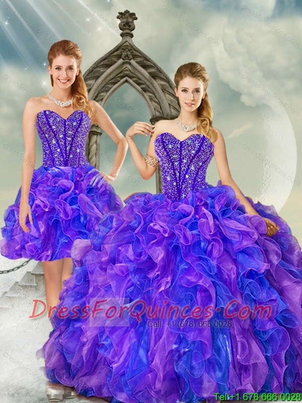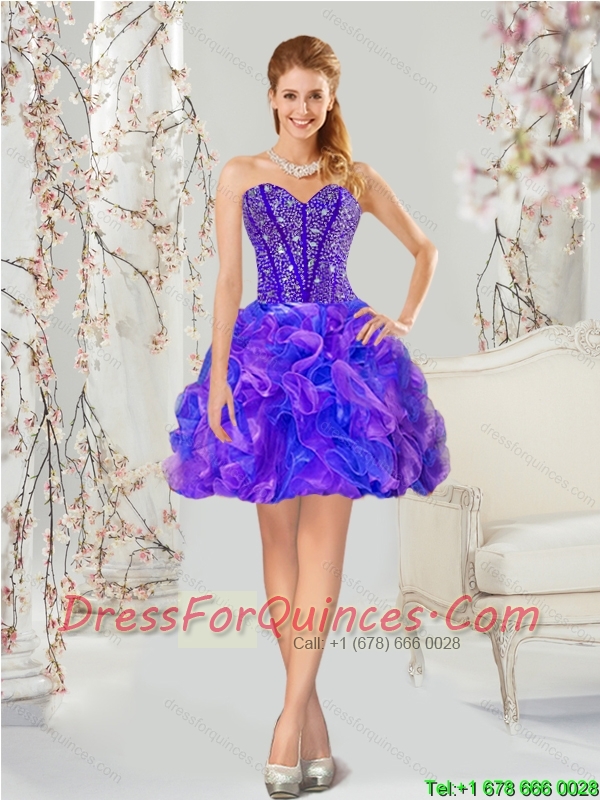 Detachable Beading and Ruffles Quince Dresses in Purple and Blue for 2015