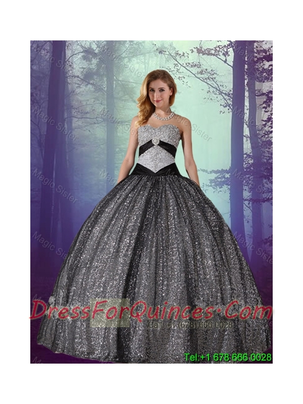 Discount Sweetheart Floor Length Sequined Detachable Quinceanera Dresses with Appliques