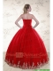 Elegant Red Strapless 2015 Quinceanera Dresses with Appliques