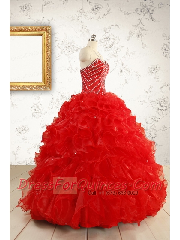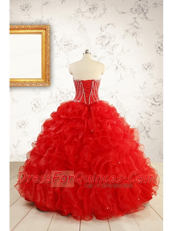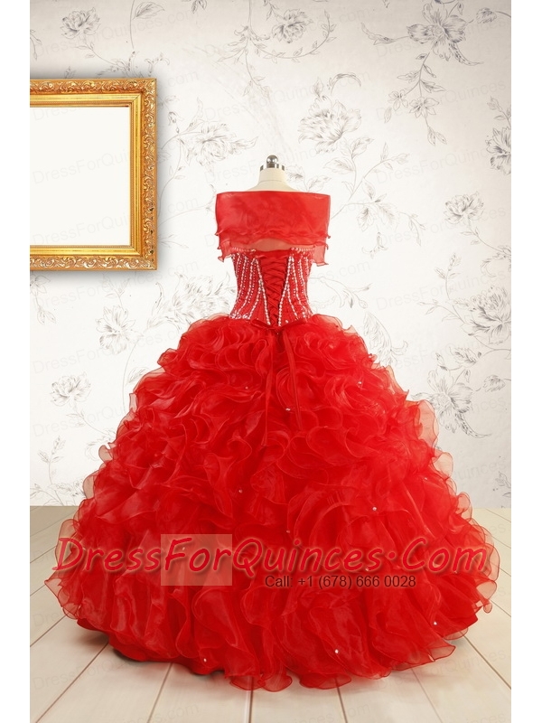 Exquisite Beading and Ruffles Red Quinceanera Gowns with Wrap for 2015