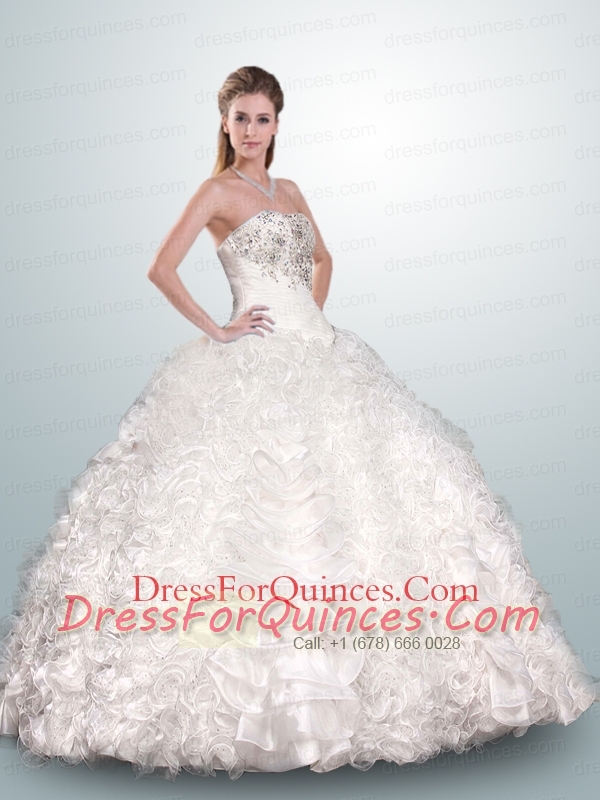 Exquisite White Quinceanera Dress with Beading and Ruffles for 2015