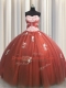Fashion Rust Red Tulle Lace Up 15th Birthday Dress Sleeveless Floor Length Beading and Appliques