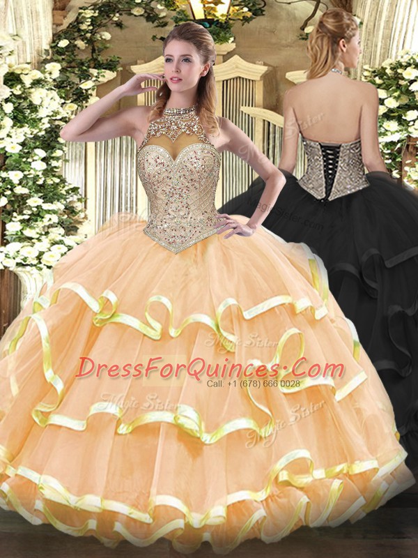 Floor Length Ball Gowns Sleeveless Peach Sweet 16 Dresses Lace Up