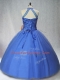 Floor Length Blue Sweet 16 Quinceanera Dress Tulle Sleeveless Beading