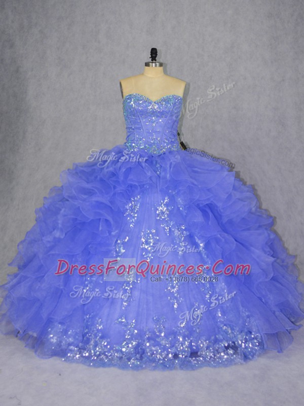 Floor Length Purple Quinceanera Gowns Sweetheart Sleeveless Lace Up
