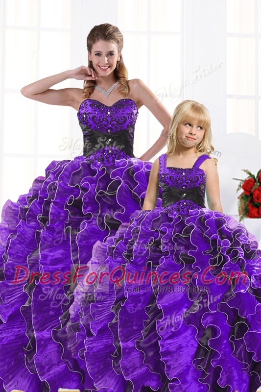 Free and Easy Black And Purple Sleeveless Organza Lace Up Ball Gown Prom Dress for Military Ball and Sweet 16 and Quinceanera