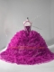 Fuchsia Ball Gowns Halter Top Sleeveless Organza Lace Up Beading and Pick Ups 15th Birthday Dress