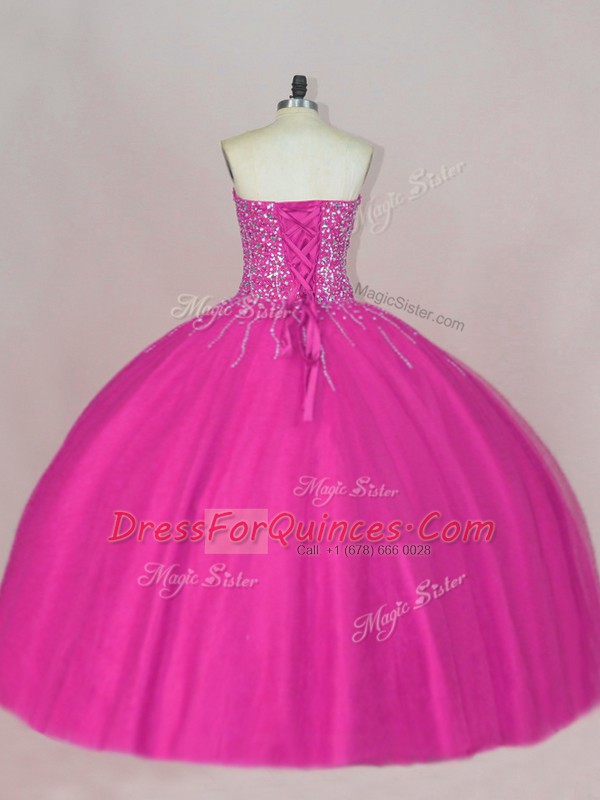 Fuchsia Sleeveless Tulle Lace Up Quinceanera Dress for Sweet 16 and Quinceanera