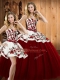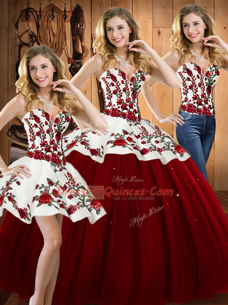Glamorous Floor Length Wine Red Quinceanera Dresses Satin and Tulle Sleeveless Embroidery