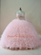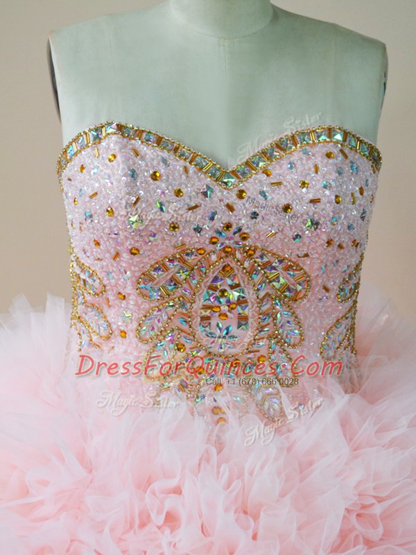 Glittering Beading and Ruffles Sweet 16 Quinceanera Dress Baby Pink Lace Up Sleeveless Brush Train